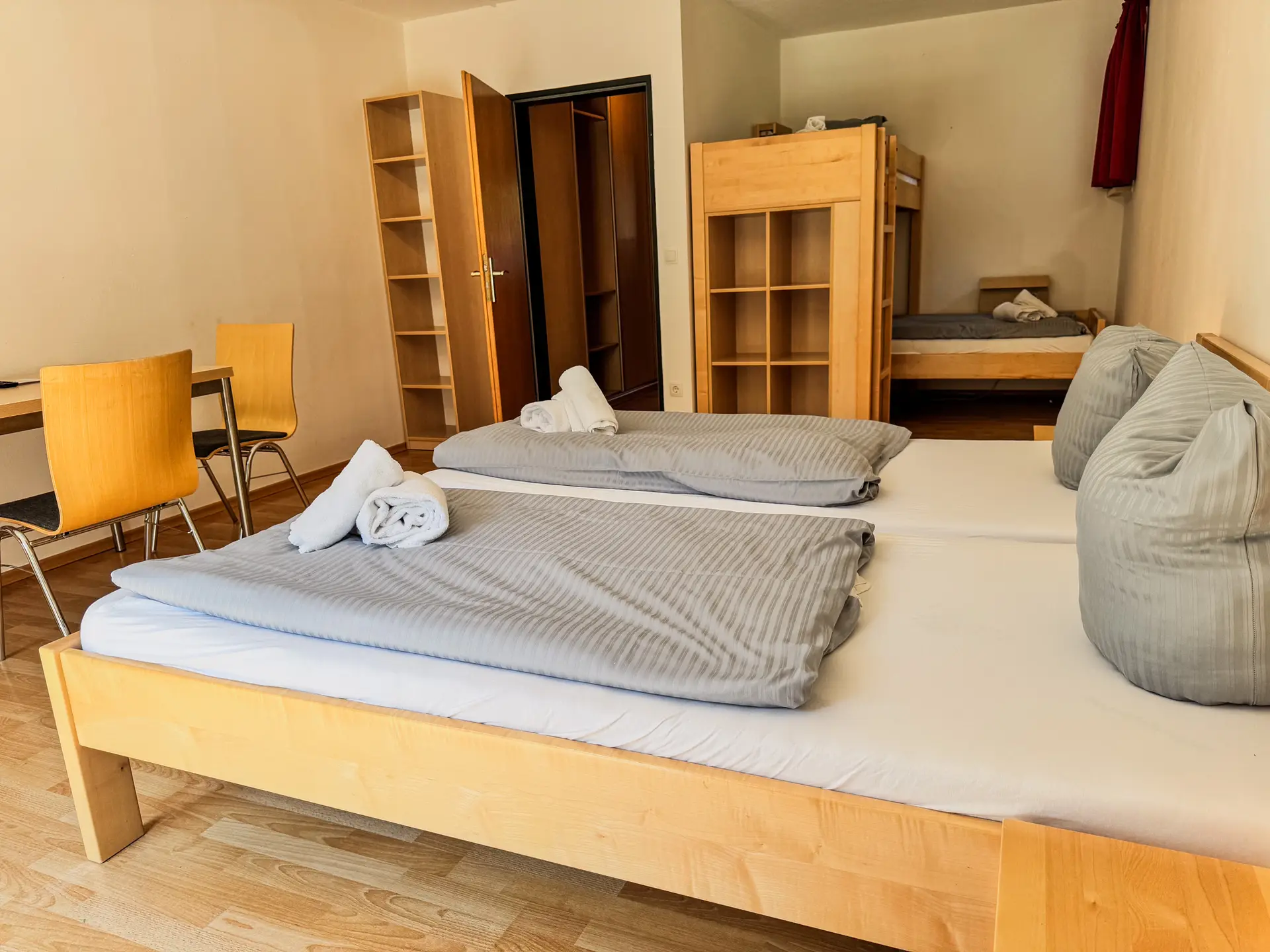 Unser Appartementhaus bietet komfortable Mehrbettzimmer, die ideal für längere Aufenthalte oder als Gruppenunterkunft geeignet sind. Jedes Zimmer verfügt über ein eigenes Bad/WC und einige Zimmer bieten zusätzlich einen Balkon oder eine Terrasse, um die wunderschöne Umgebung in vollen Zügen zu genießen.