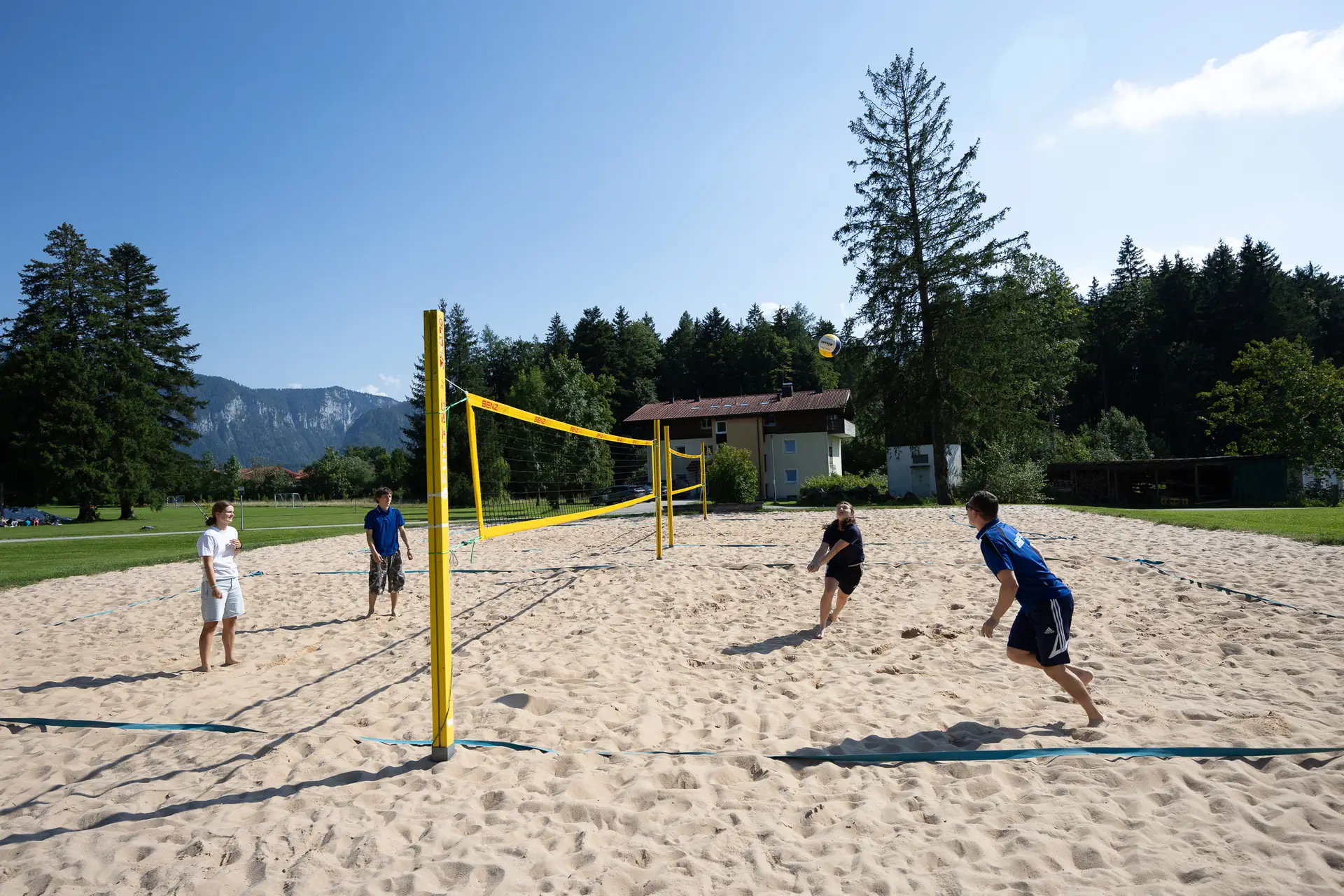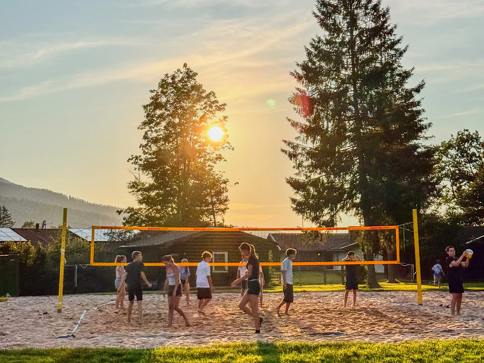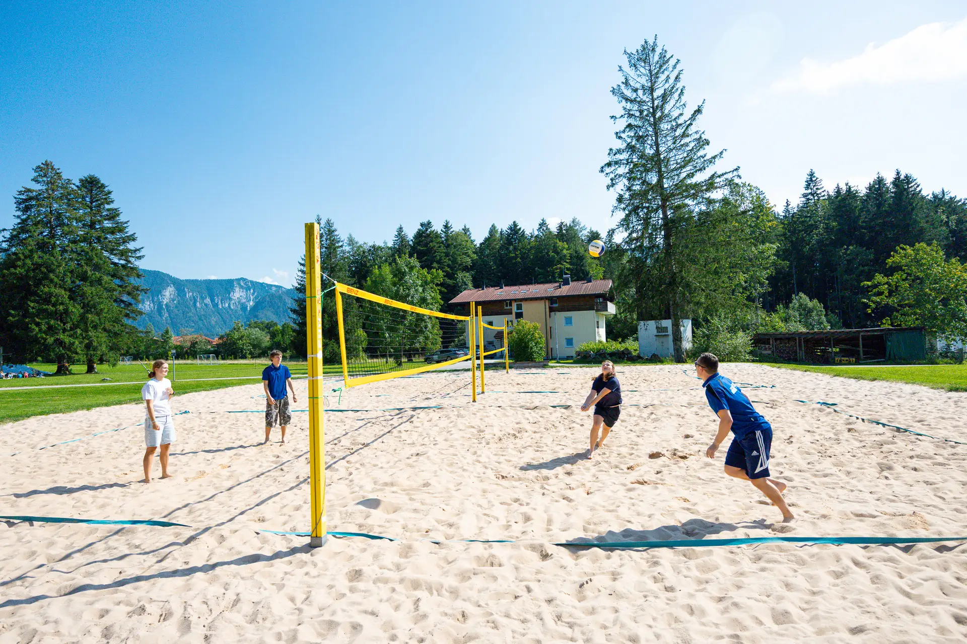 Wenn du Lust auf spritzige Action unter blauem Himmel hast, dann sind unsere zwei Beachvolleyballfelder im BLSV Sportcamp Inzell genau das Richtige. Ob Team-Challenge, Training oder entspanntes Zusammenspiel – hier findest du Raum & Rahmen, um im Sand zu glänzen.