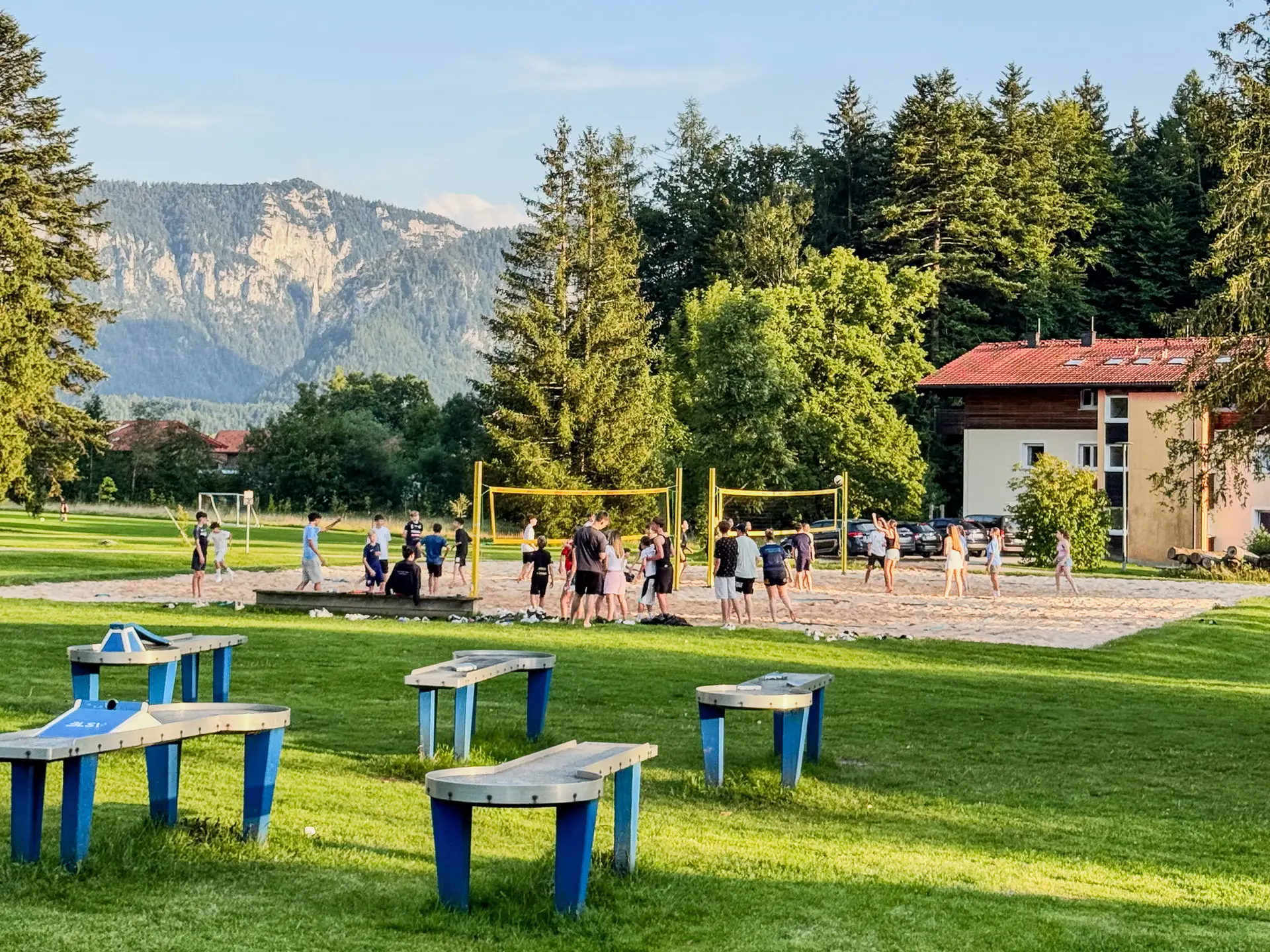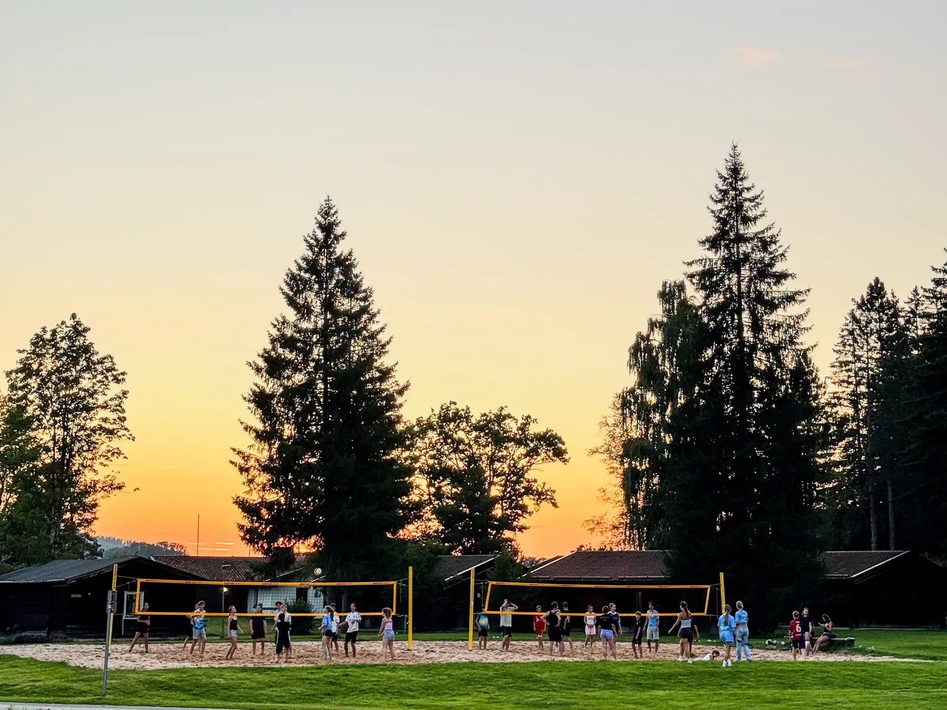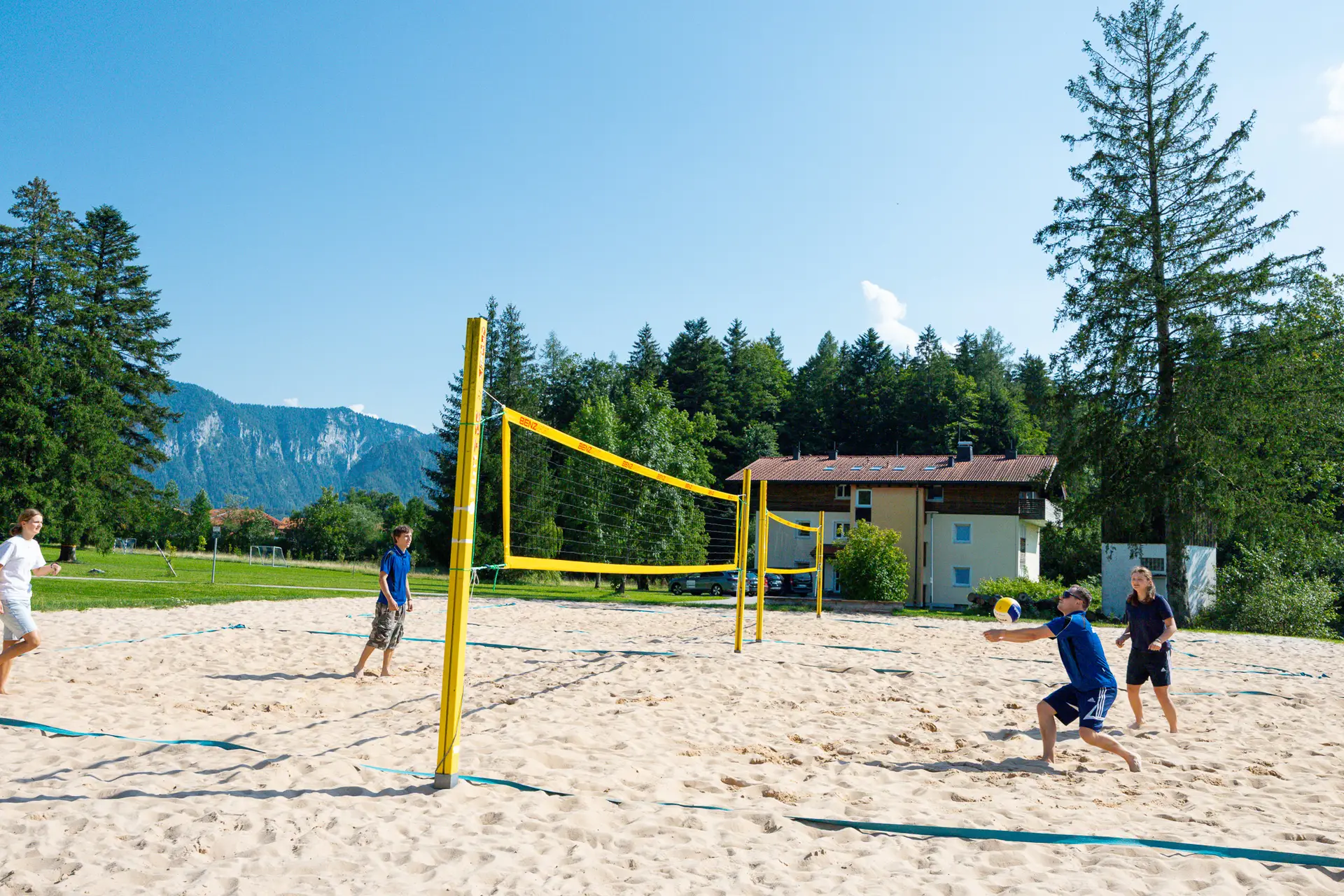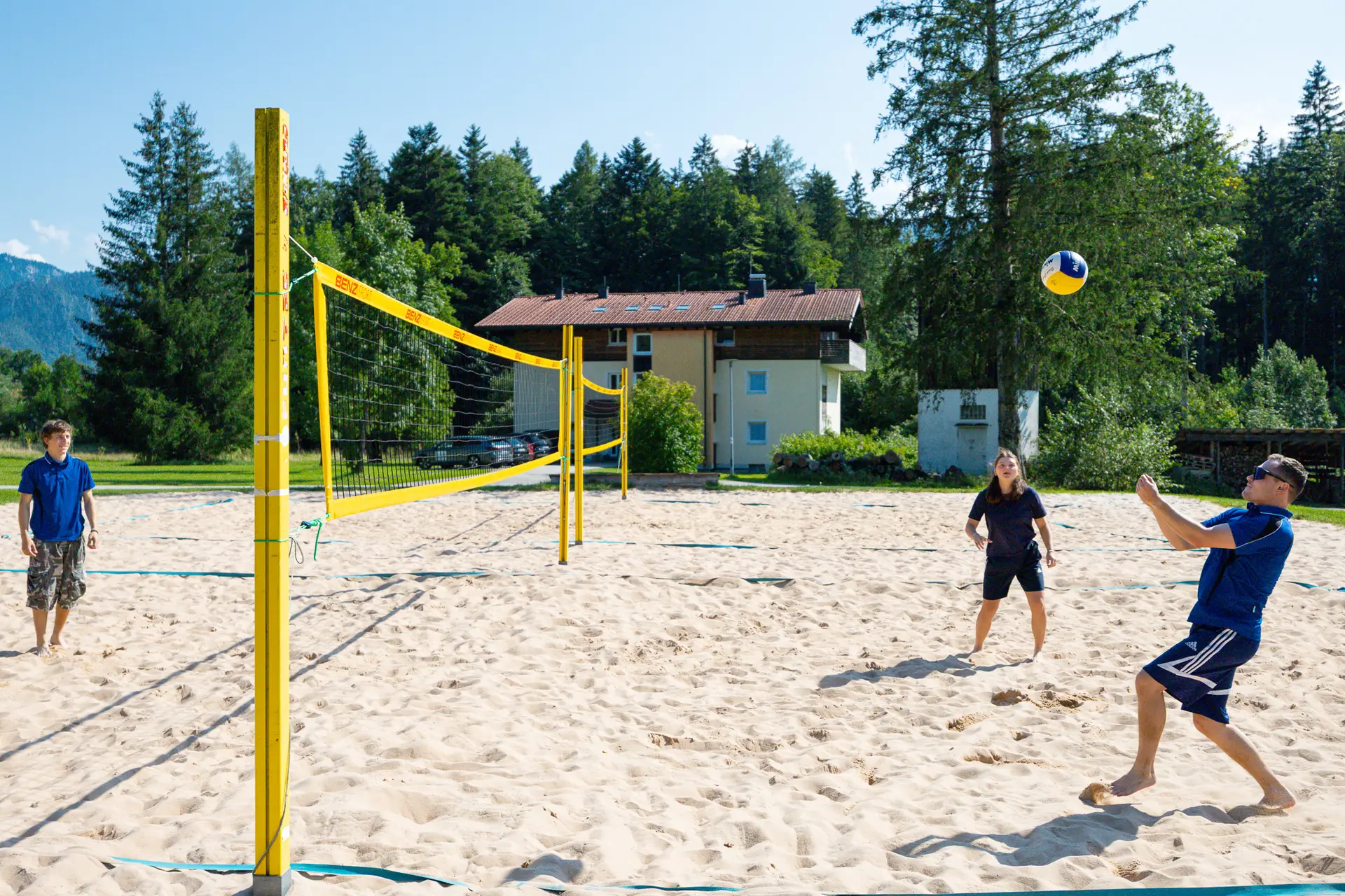 Wenn du Lust auf spritzige Action unter blauem Himmel hast, dann sind unsere zwei Beachvolleyballfelder im BLSV Sportcamp Inzell genau das Richtige. Ob Team-Challenge, Training oder entspanntes Zusammenspiel – hier findest du Raum & Rahmen, um im Sand zu glänzen.