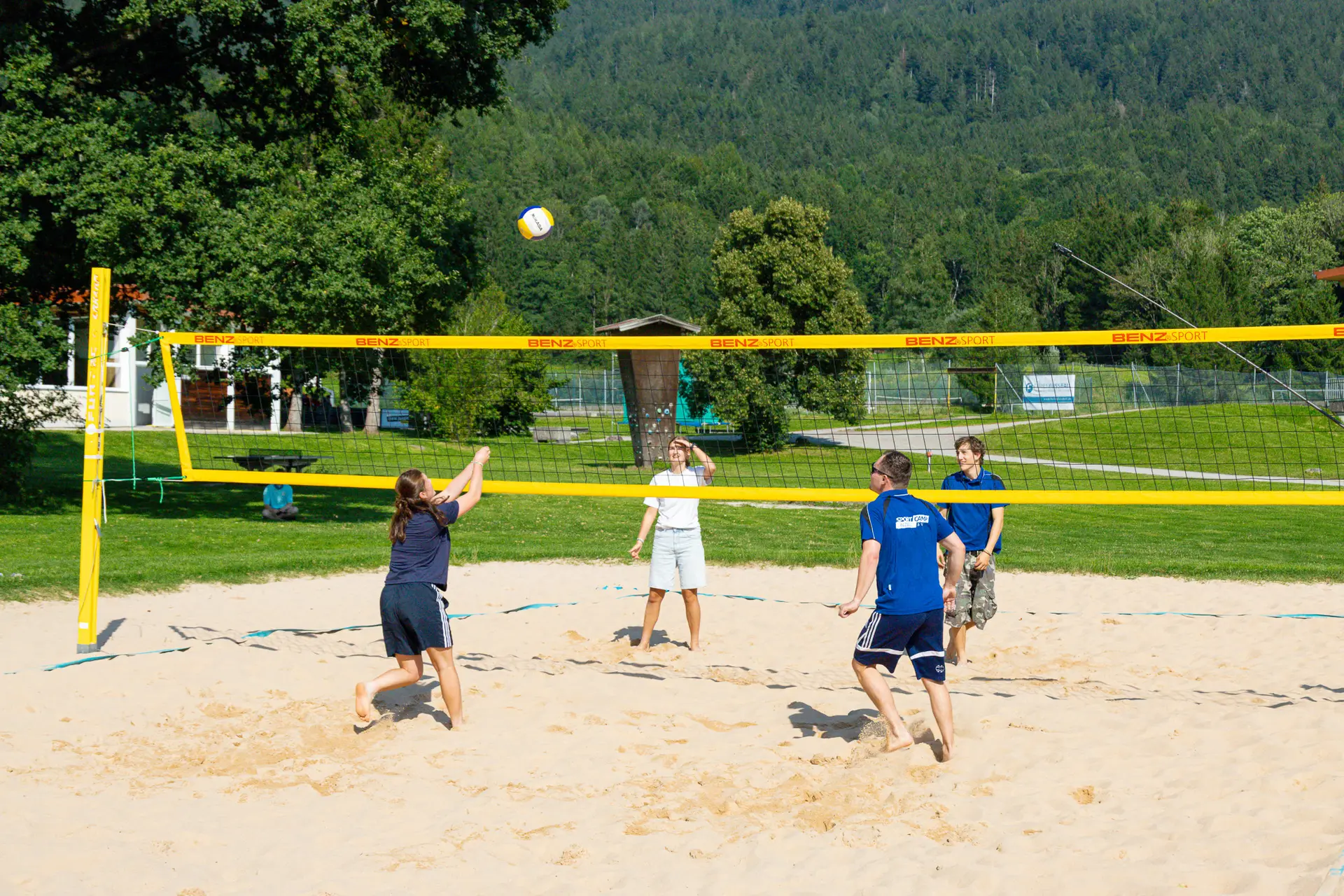 Zwei großzügige Beachvolleyballfelder – ideal geeignet für Turniere oder lockere Matches im Freizeitprogramm.