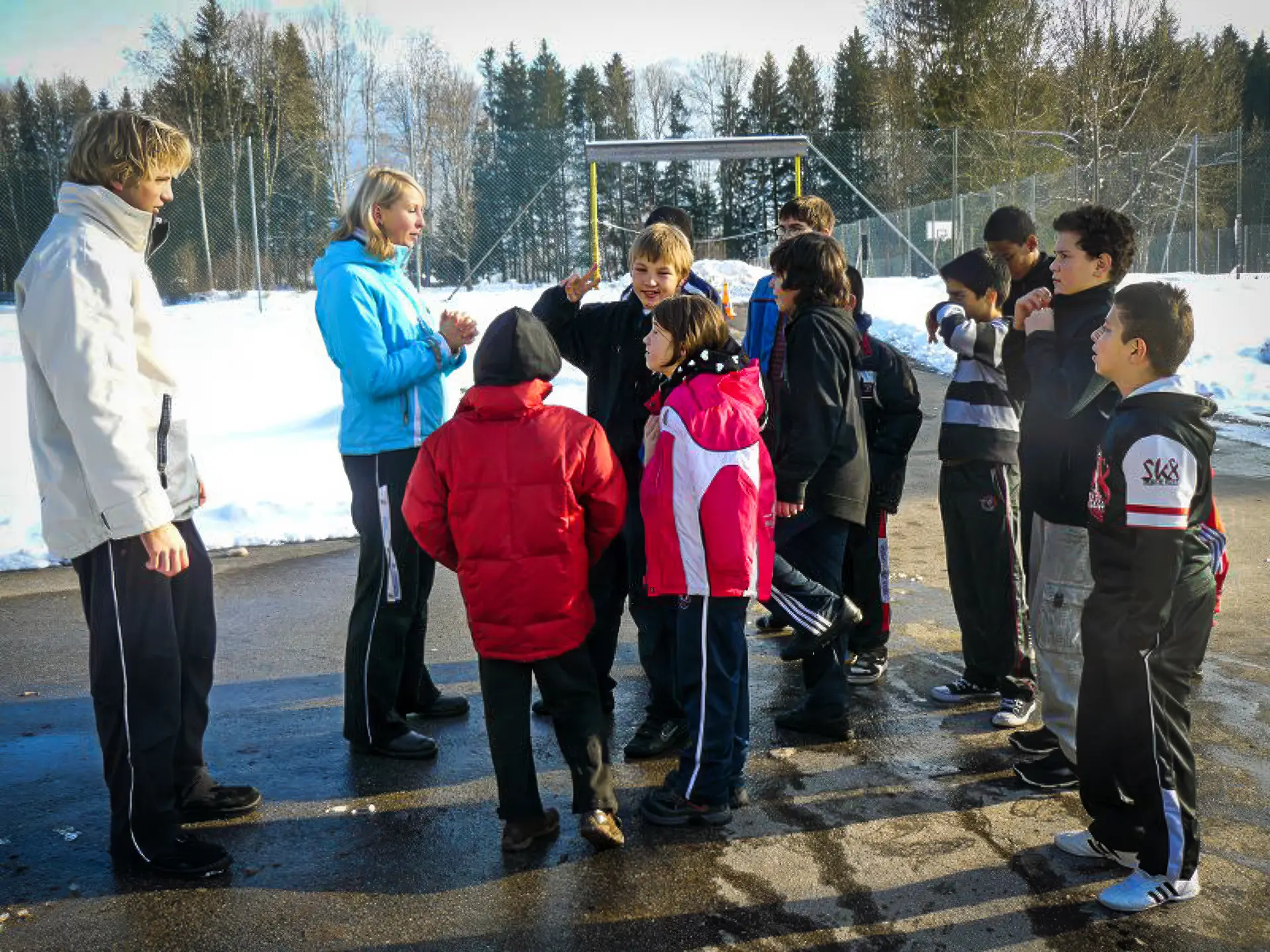 Camp als Spielfeld: Weil das BLSV Sportcamp Inzell vielfältig ausgestattet ist – mit Kletterwänden, Fußball‑ und Beachvolleyballfeldern, Biathlon oder Bogenschießen, Seminarräumen etc. – gibt es viele interessante Orte, die sich prima als Stationen eignen.
