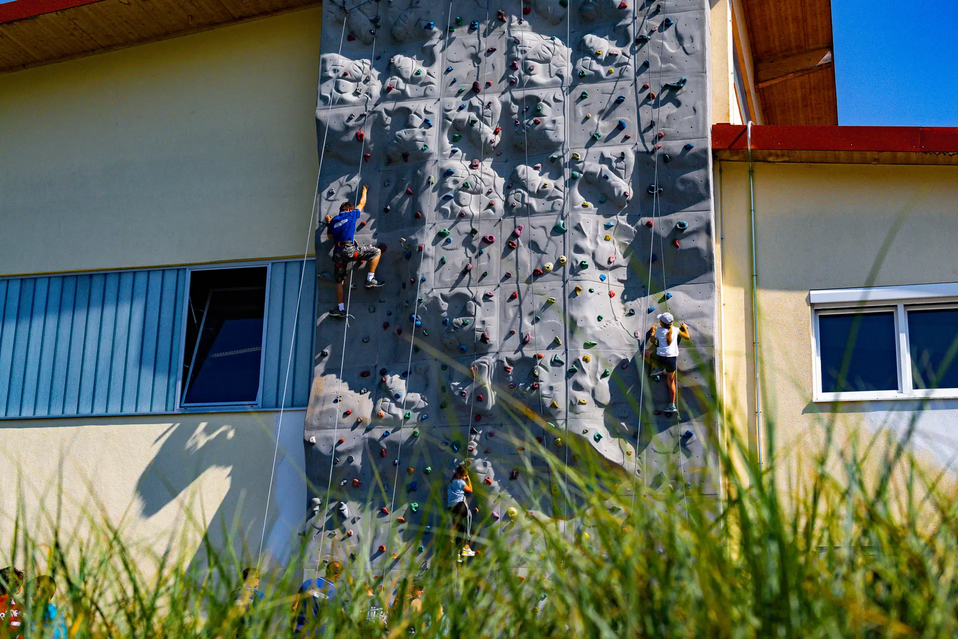 • Zwei Kletterwände, drinnen und draußen – ideal für unterschiedliche Wetterbedingungen und Tageszeiten. Wir haben zwei 14 m hohe Kletterwände, die spannende Herausforderungen bieten.