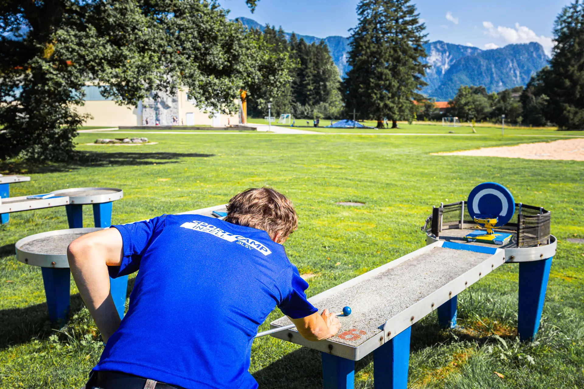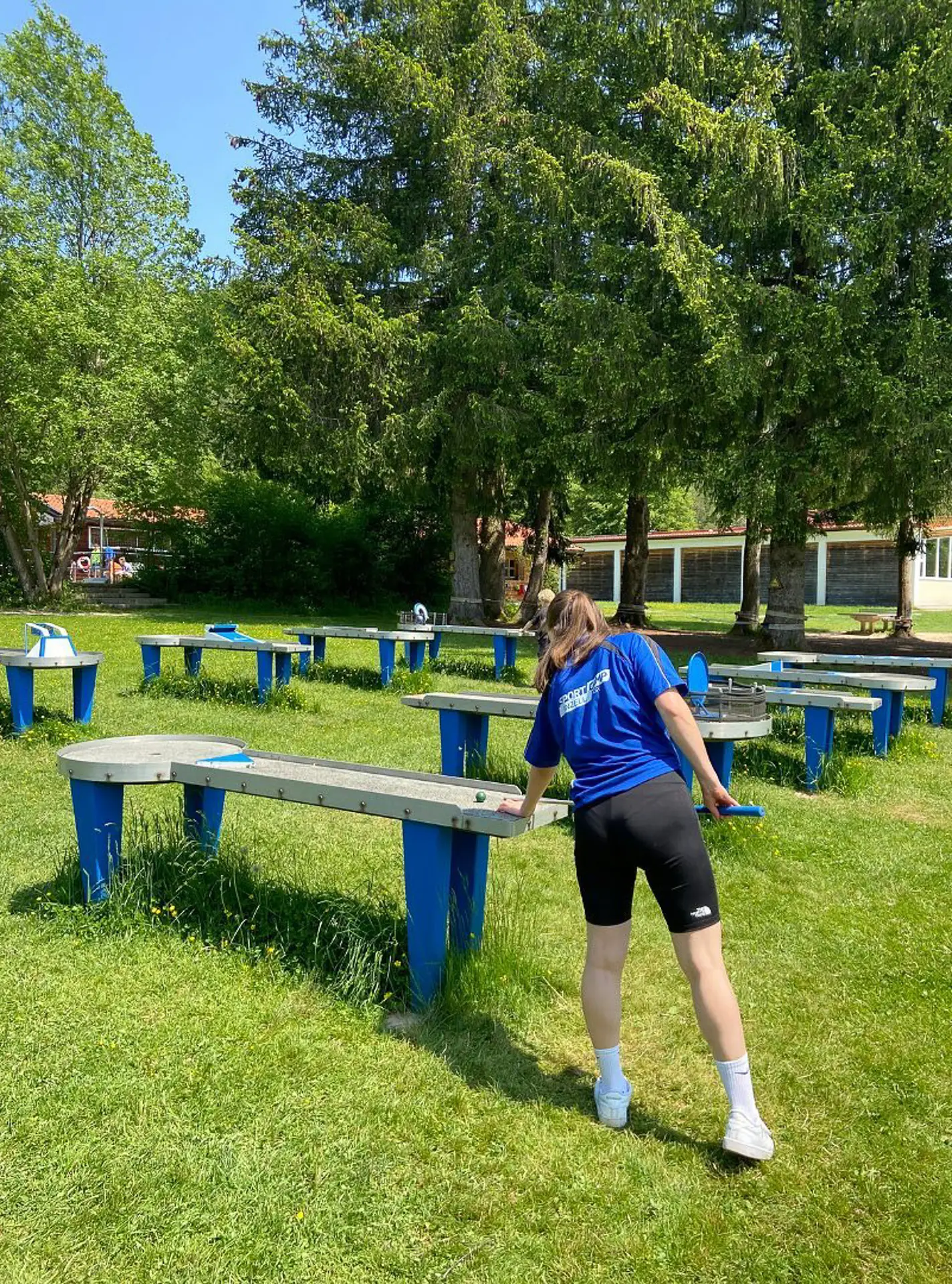 Wer glaubt, dass nur Fußball, Klettern oder Wandern für Spannung sorgen, der hat Pit-Pat noch nicht ausprobiert. Unsere Pit-Pat-Anlage im BLSV Sportcamp Spitzingsee verbindet Geschick, Konzentration und eine ordentliche Portion Spaß – mitten in der frischen Bergluft.